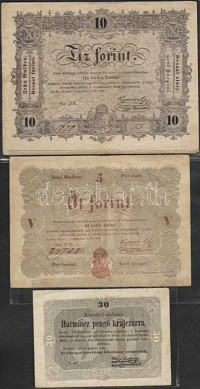 Leírás: 1848-49. "Kossuth bankók" 30kr, 5Ft, 10Ft T:II