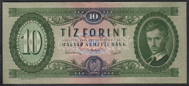 1949. 10Ft T:II+ Csak egyszer hajtott! https://www.darabanth.com/hu/52-Gyorsarveres/52.0/Numizmatika/NUMIZMATIKA-NUMISMATICS~247/1949-10Ft-TIIplus-Csak-egyszer-hajtott~II102462