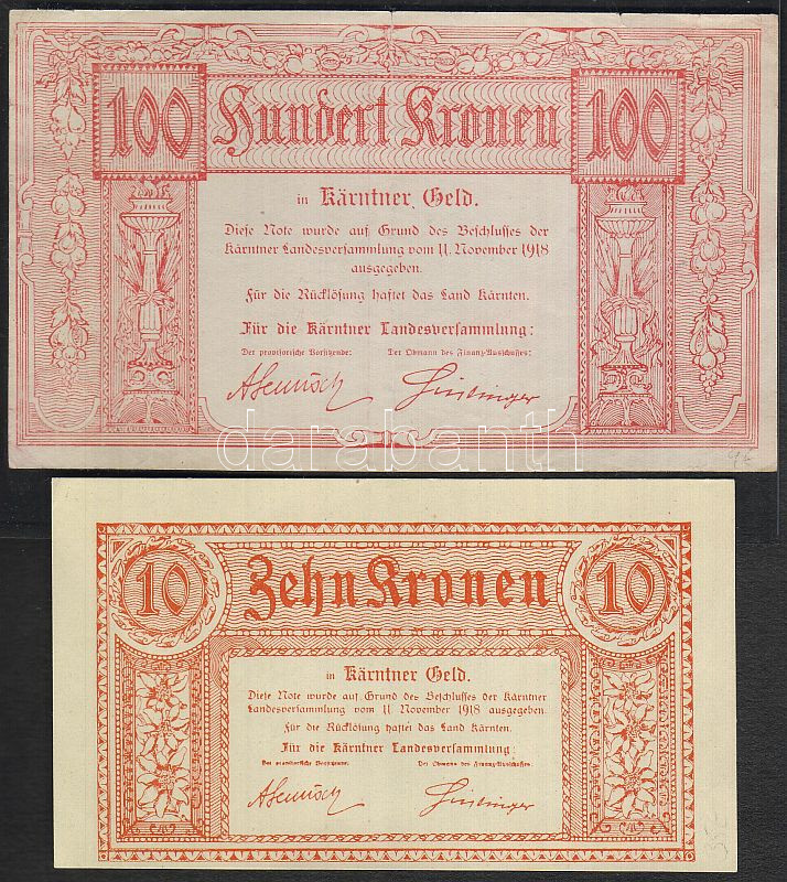 Ausztria/Szövetségi Államok/Karintia 1918. 10K T:I- + 100K T:II+ Csak ... https://www.darabanth.com/hu/52-Gyorsarveres/52.0/Numizmatika/NUMIZMATIKA-NUMISMATICS~247/AusztriaSzovetsegi-AllamokKarintia-1918-10K-TI-plus-100K-TIIplus-Csak-egyszer-hajtva~II101589