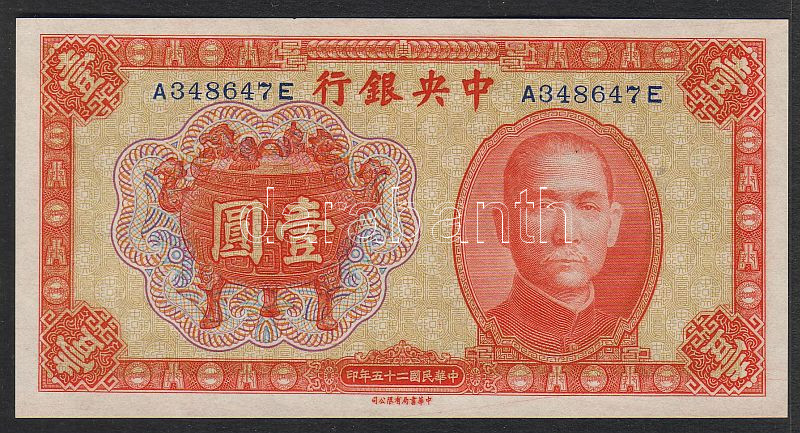 Kína/Central Bank 1936. 1Y T:I https://www.darabanth.com/hu/52-Gyorsarveres/52.0/Numizmatika/NUMIZMATIKA-NUMISMATICS~247/KinaCentral-Bank-1936-1Y-TI~II102577