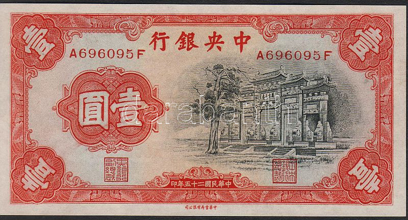 Kína/Central Bank 1936. 1Y T:I https://www.darabanth.com/hu/52-Gyorsarveres/52.0/Numizmatika/NUMIZMATIKA-NUMISMATICS~247/KinaCentral-Bank-1936-1Y-TI~II102579