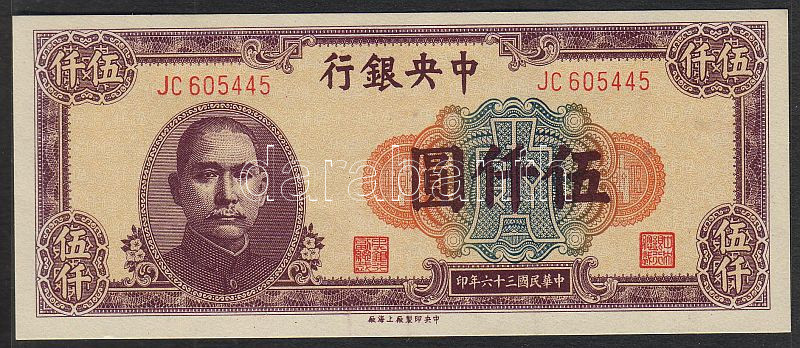 Leírás: Kína/Central Bank 1940-es évek 5000Y T:I