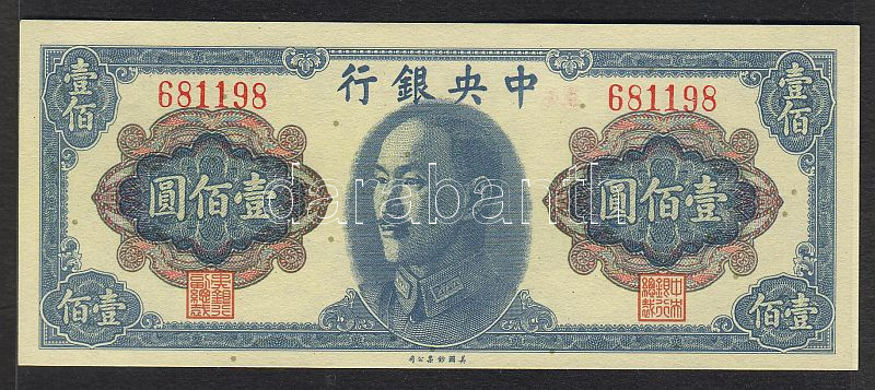 Kína/Central Bank 1948. 100Y T:I https://www.darabanth.com/hu/52-Gyorsarveres/52.0/Numizmatika/NUMIZMATIKA-NUMISMATICS~247/KinaCentral-Bank-1948-100Y-TI~II102598