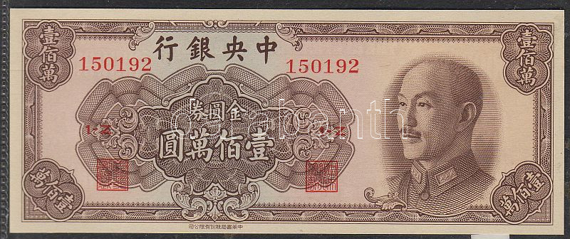 Kína/Central Bank 1949. 1000.000Y T:I https://www.darabanth.com/hu/52-Gyorsarveres/52.0/Numizmatika/NUMIZMATIKA-NUMISMATICS~247/KinaCentral-Bank-1949-1000000Y-TI~II102610