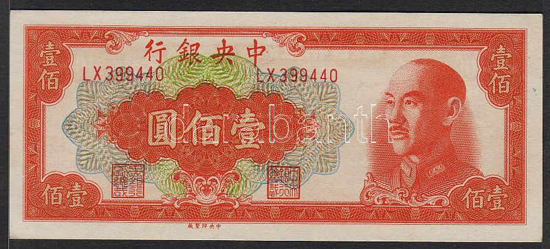 Kína/Central Bank 1949. 100Y T:I https://www.darabanth.com/hu/52-Gyorsarveres/52.0/Numizmatika/NUMIZMATIKA-NUMISMATICS~247/KinaCentral-Bank-1949-100Y-TI~II102599