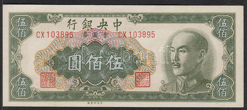 Kína/Central Bank 1949. 500Y T:I https://www.darabanth.com/hu/52-Gyorsarveres/52.0/Numizmatika/NUMIZMATIKA-NUMISMATICS~247/KinaCentral-Bank-1949-500Y-TI~II102600