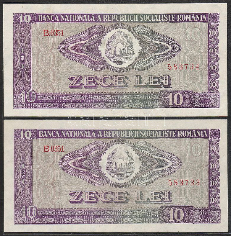Románia 1966. 10L (2x) egymásutáni sorszámokkal! T:I https://www.darabanth.com/hu/52-Gyorsarveres/52.0/Numizmatika/NUMIZMATIKA-NUMISMATICS~247/Romania-1966-10L-2x-egymasutani-sorszamokkal-TI~II102470