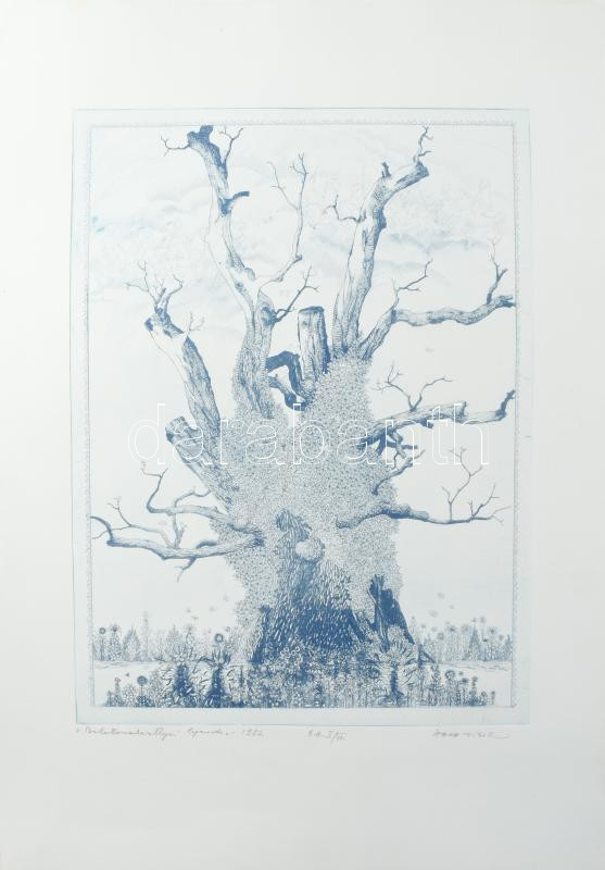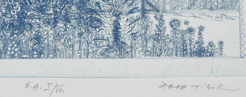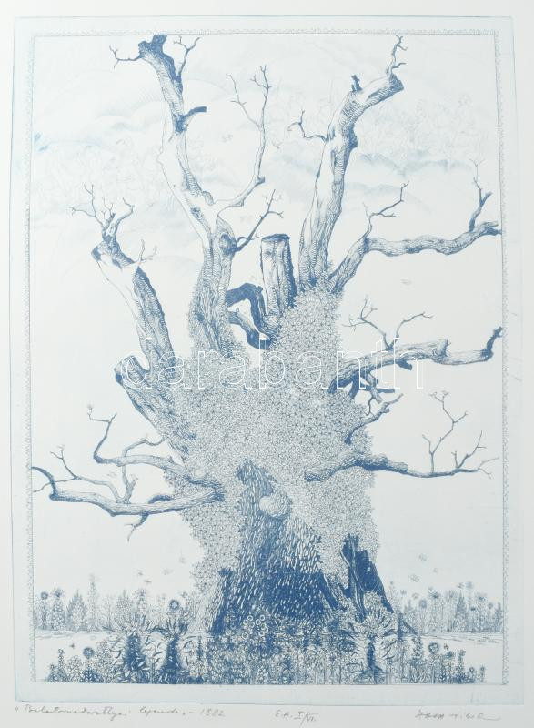 Zala Tibor (1920-2004): Balatonakarattyai legenda, 1982. Rézkarc, papír. Jelzett. Művészpéldány E.A. I/VII. számozással. 40x30 cm
