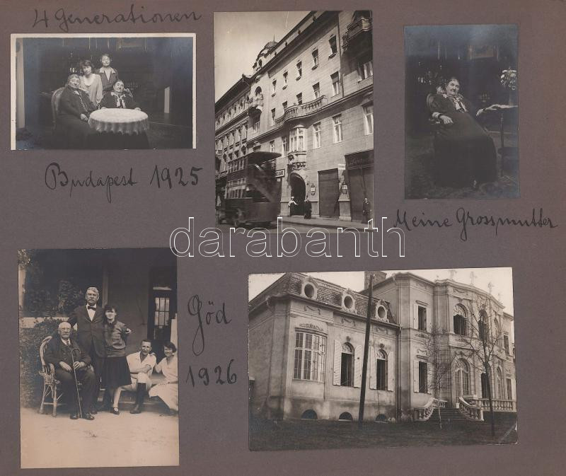 1925 Elektromos emeletes busz Budapesten. Fotó 9x11 cm albumlapon