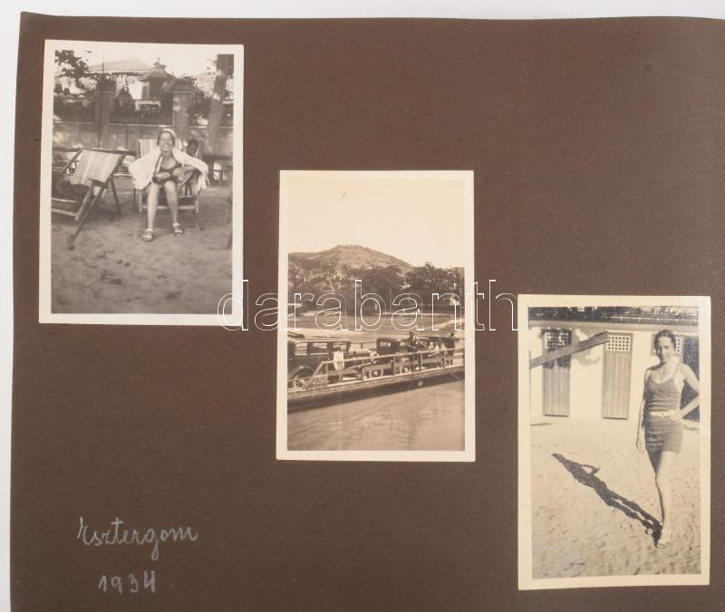 1933 Csömör, Győr, Kékes, Esztergom, Tapolca, 130 darabos fotóalbum városképek, szociófotók, járművek képei, stb. Szép fotóalbumban feliratozott lapokon.