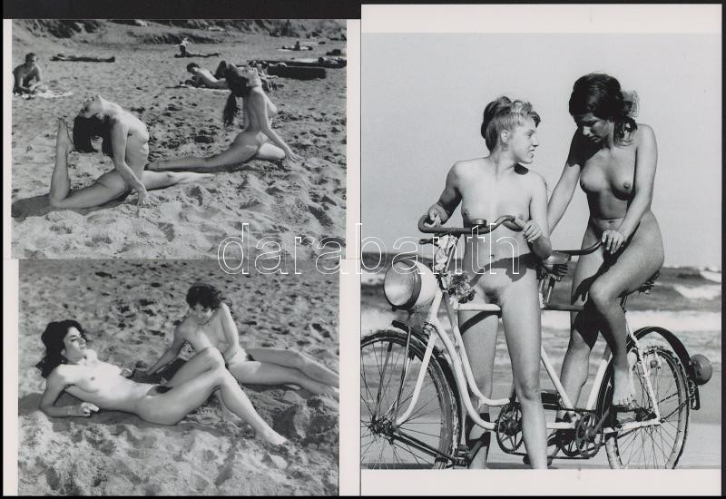 cca 1953 "Naturisták örömei", szolidan erotikus felvételek, 3 db modern nagyítás, jelzés nélkül, 21x15 cm és 10x15 cm