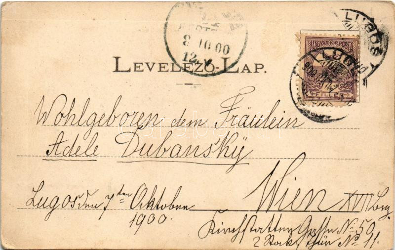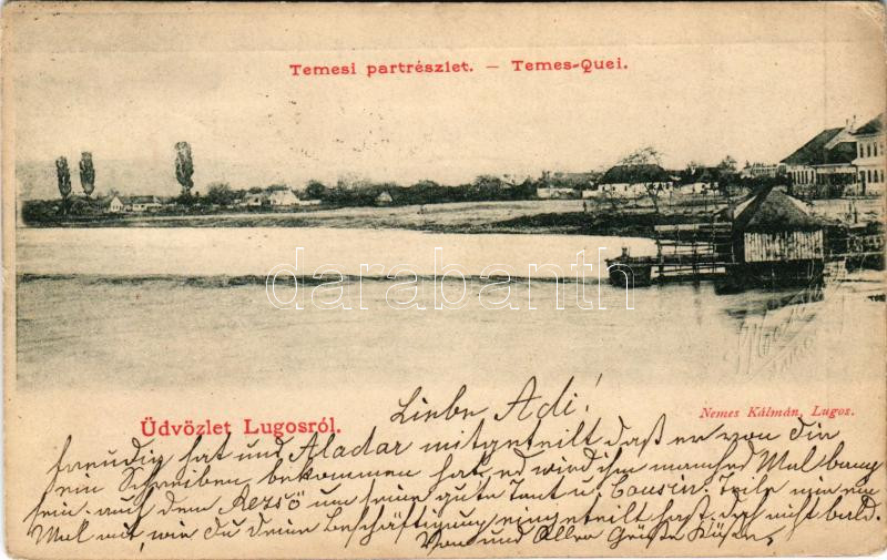 1900 Lugos, Lugoj; Temes part részlet, hajómalom. Nemes Kálmán kiadása / Timis riverside, boat mill (EK)