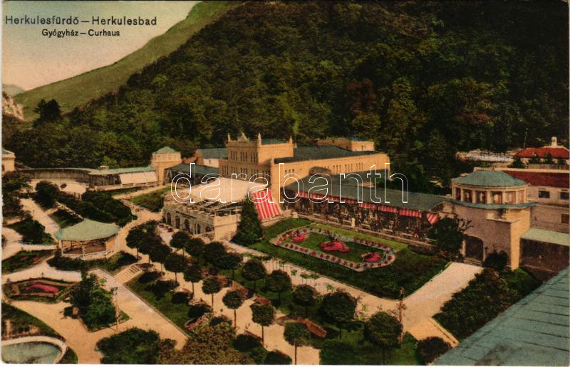 1910 Herkulesfürdő, Baile Herculane; gógyház. Eberle Keresztély kiadása / spa (ázott sarkak / wet corners)