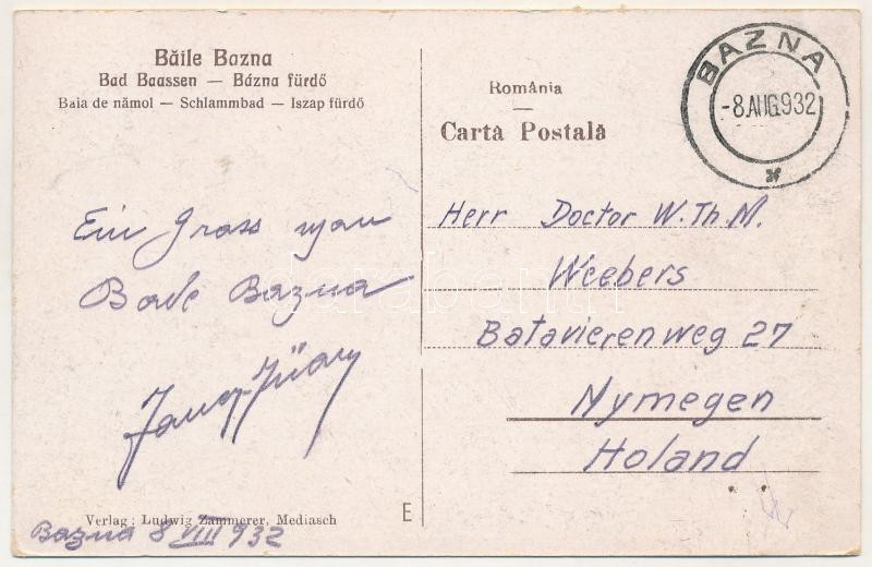 1932 Báznafürdő, Bad Baassen, Baile Bazna; Iszapfürdő. Ludwig Zammerer kiadása / Schlammbad / mud spa. TCV card (EB)