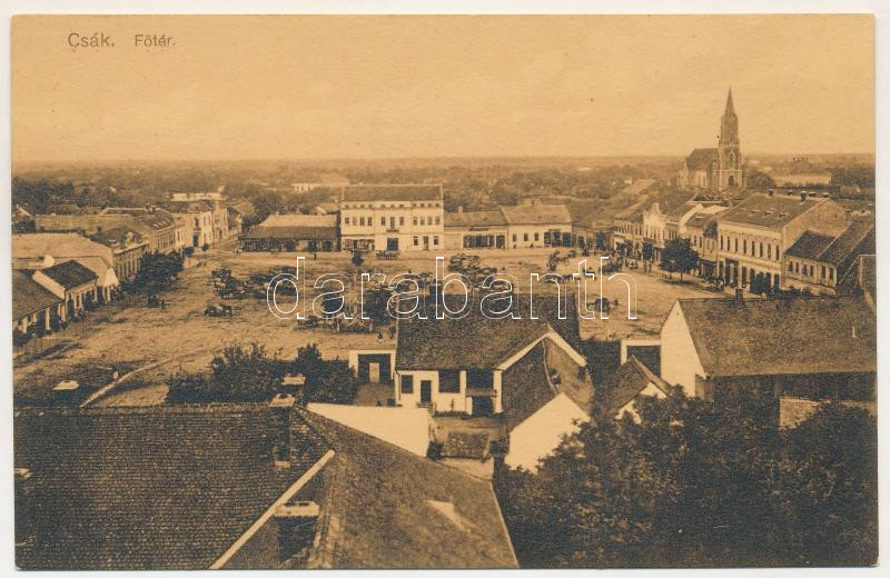 Csák, Csákova, Ciacova; Fő tér, üzletek, piac. Deutsch József kiadása / main square, shops, market