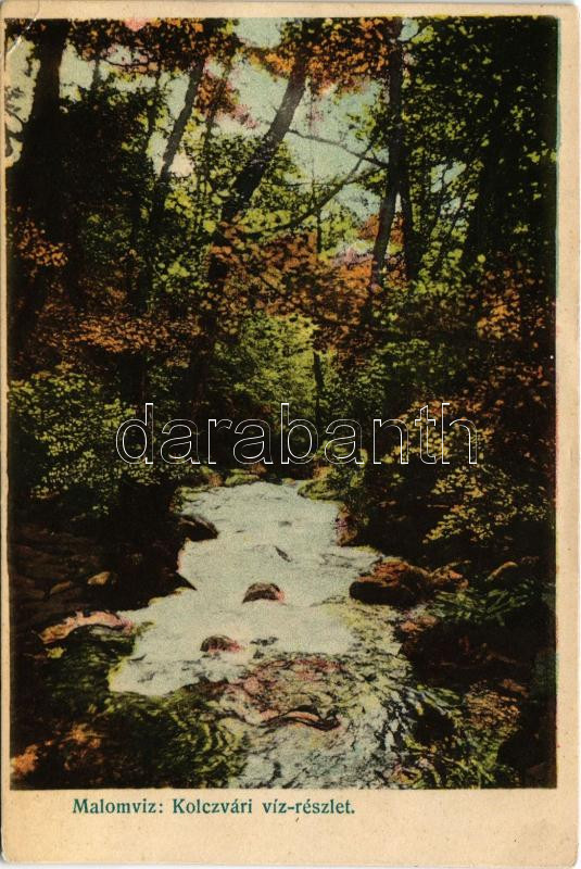 Malomvízszuszény, Malomvíz, Szuszény, Suseni; Kolcz vár (Kolcvár) romjai, víz részlet. Kendoff A. és fia kiadása (Hátszeg) / Cetatea Colt / castle ruins, creek (EB)
