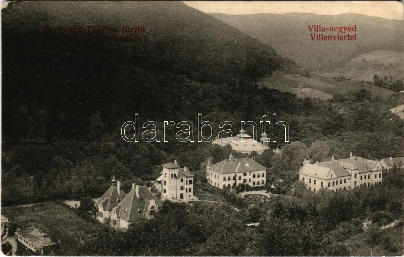 1907 Trencsénteplic, Trencianske Teplice; Villanegyed. Wertheim Zsigmond kiadása / Villenviertel / villas (ázott / wet damage)