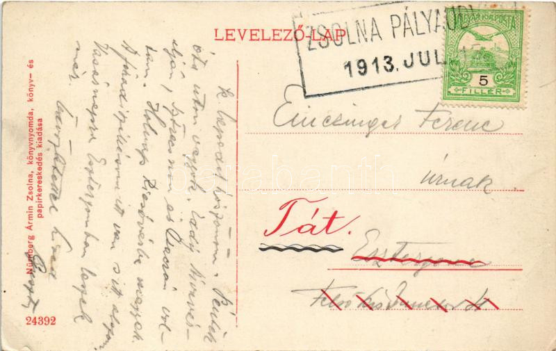 1913 Zsolna, Sillein, Zilina; látkép. Nürnberg Ármin kiadása / view + "Zsolna pályaudvar" (EB)