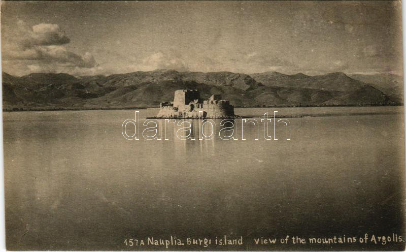 Nafplio, Nauplio, Nauplie; Burgi Island, View of the Mountains of Argolis. Bourtzi Water Castle (fl)