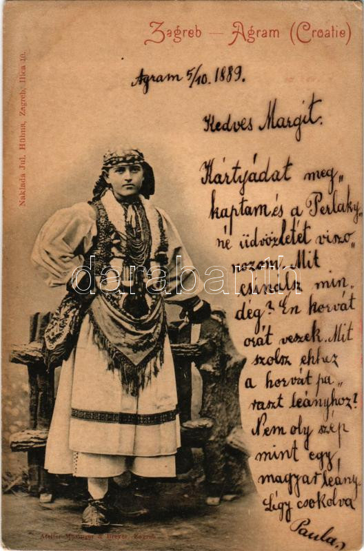 1899 Zagreb, Zágráb; Horvát népviselet. Jul. Hühn kiadása, Atelier Mosinger & Breyer / Croatian folklore (fl)