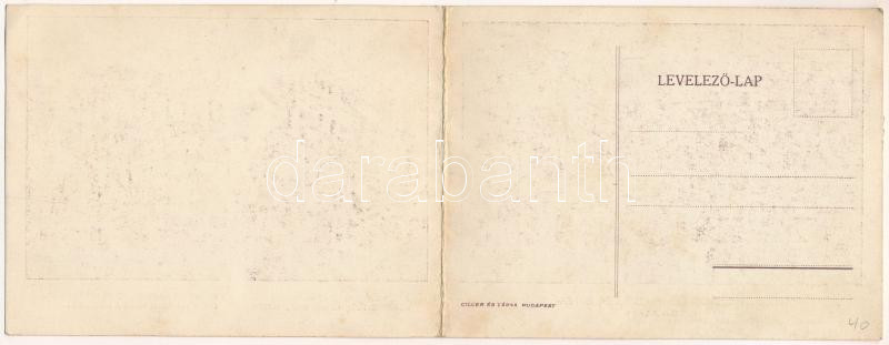 "A Kárpátoktul le az Al-Dunáig egy bősz üvöltés egy vad zivatar! Szétszórt hajával, véres homlokával áll a viharban maga a magyar..." Kossuth szobor leleplezésének emlékére kiadott 2-részes kihajtható lap, az átadó ünnepséget Horthy vezényelte, Gróf Apponyi Albert avatóbeszédet mondott. Az emlékmű Horvay János alkotása. Budapest 1927. november 6. Cilcer és Társa kiadása / Kossuth Memorial inaugurated on 6 November 1927 by Governor Miklós Horthy, 2-tiled folding card (hajtásnál kopott / worn at fold)