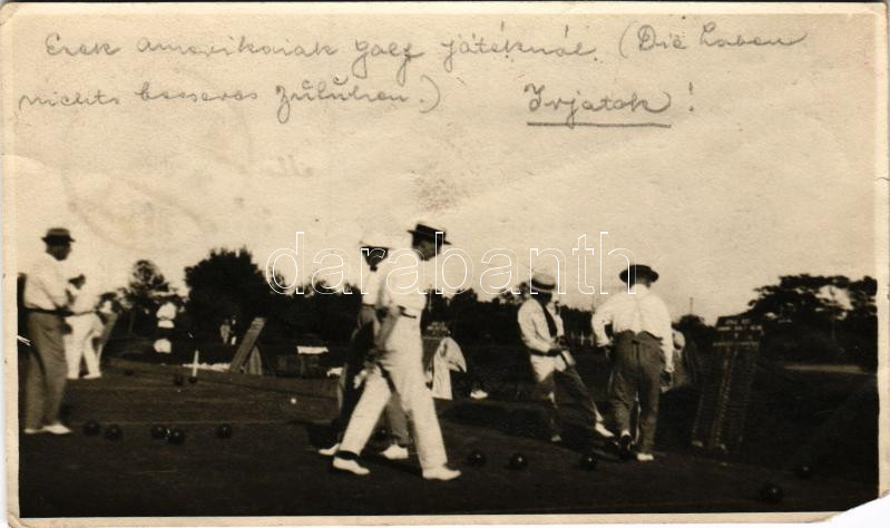 1924 Shanghai, "Ezek amerikaiak golf játéknál" gyep tekézés / Americans playing yard bowling. photo (non PC) (EM)