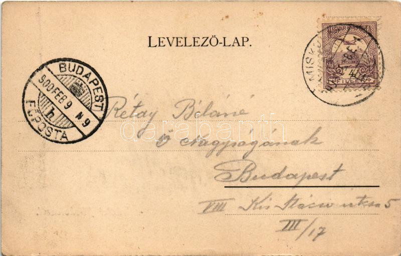 1900 Miskolc, látkép, zsinagóga. Gedeon A. kiadása (EB)