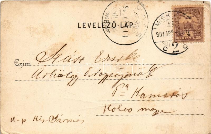 1901 Miskolc, Mindszenti templom a MÁV üzletvezetőséggel. Gedeon A. kiadása (fa)