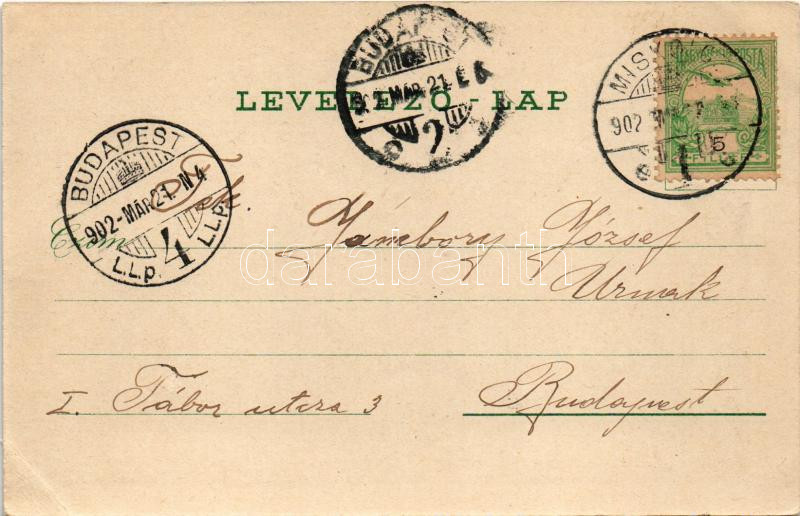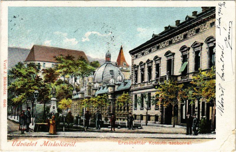 1902 Miskolc, Erzsébet tér és fürdő, Kossuth szobor. Verő J. kiadása (EB)