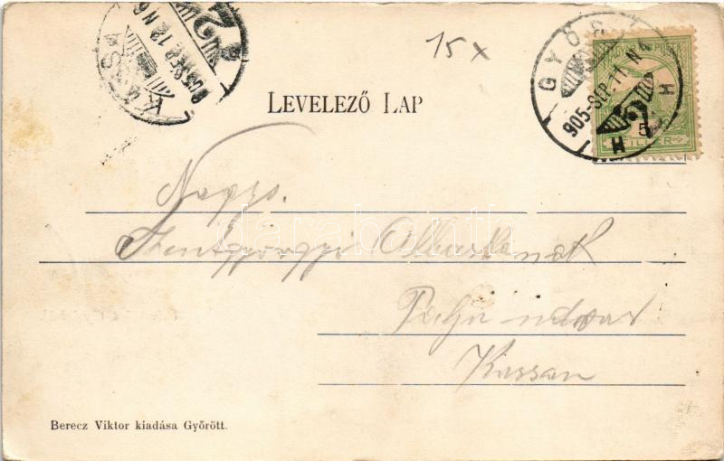 1905 Győr, Arany János utca, tehervagonok, vasút. Berecz Viktor kiadása