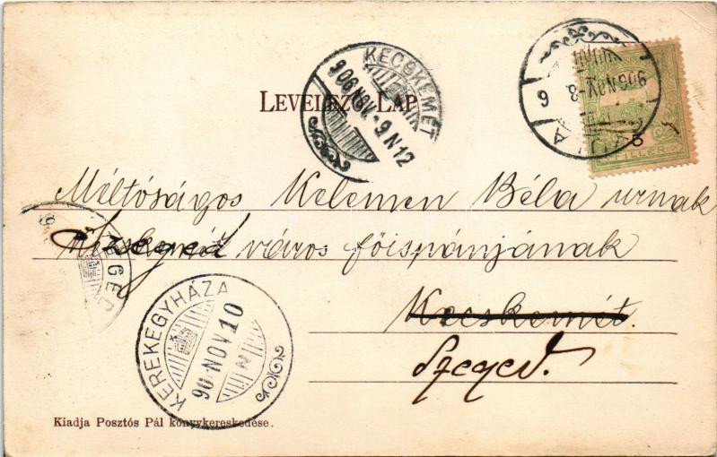 1906 Hódmezővásárhely, Ótemplom, Posta. Posztós Pál kiadása (ázott sarok / wet corner)