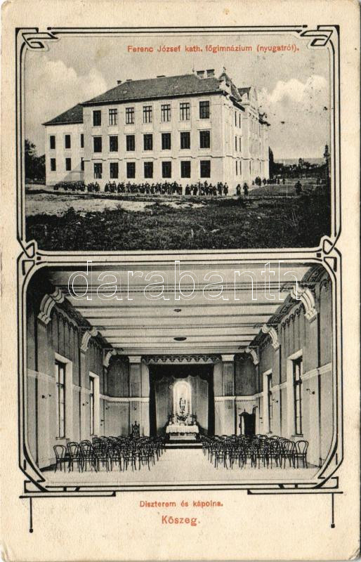 1911 Kőszeg, Ferenc József katolikus főgimnázium (nyugatról), díszterem és kápolna, belső. Róth Jenő kiadása. Art Nouveau (EK)