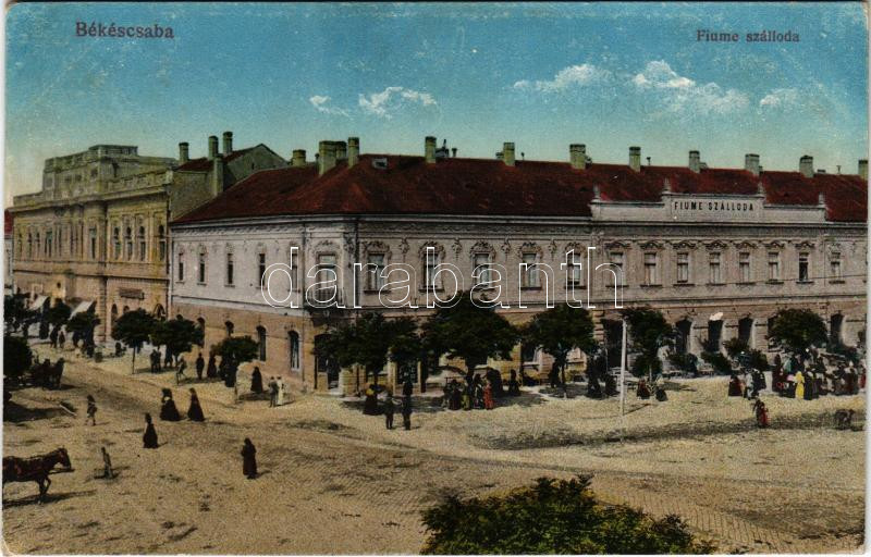 1918 Békéscsaba, Fiume szálloda, piac. Vasúti levelezőlapárusítás 2. sz. 1916. (fl)