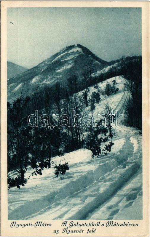 1928 Mátra, Nyugati-Mátra, a Galyatetőről a Mátrabércen az Ágasvár felé télen. Dr. Vigyázó János felvétele (ázott sarok / wet corner)