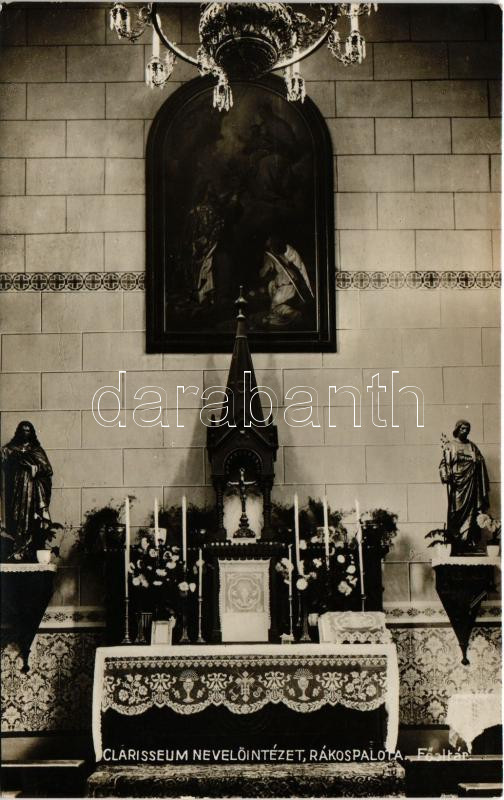 Budapest XV. Rákospalota, Clarisseum nevelőintézet, főoltár, belső. Don Bosco nyomda kiadása