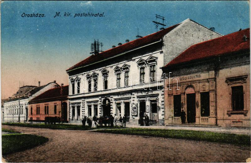 Orosháza, M. kir. postahivatal, gyógyszertár, Berger Lajos üzlete (EK)