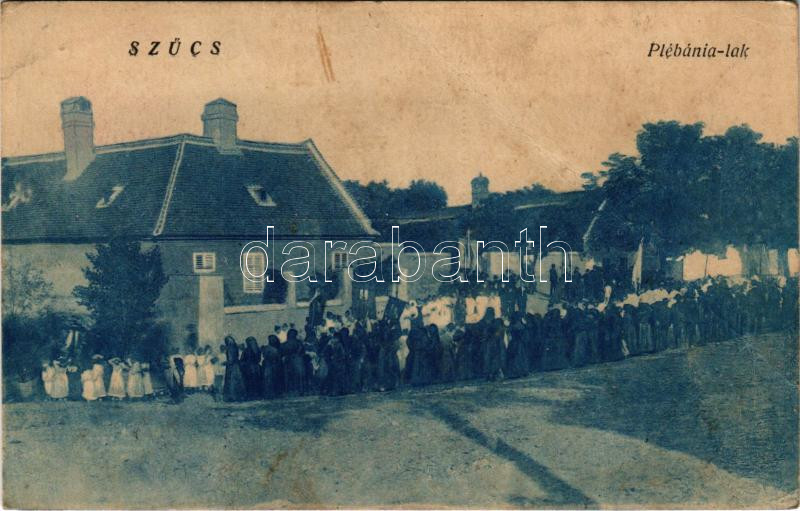 Szűcsi, Plébánia lak, körmenet. Hangya szövetkezet kiadása (fa)