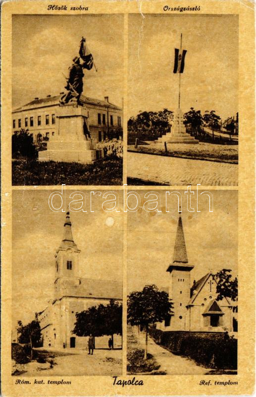 Tapolca, Hősök szobra, emlékmű, Országzászló, Római katolikus templom, Református templom (fa)