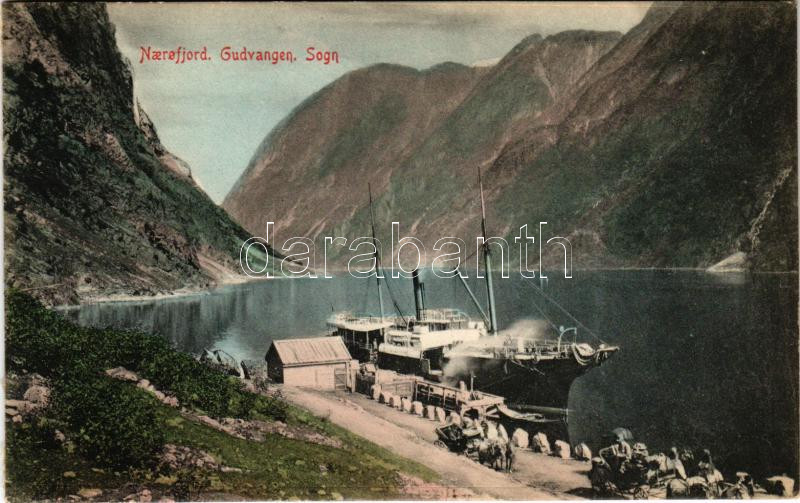 Naeroyfjord, Gudvangen, Sogn; port, steamship (glue marks)