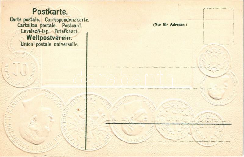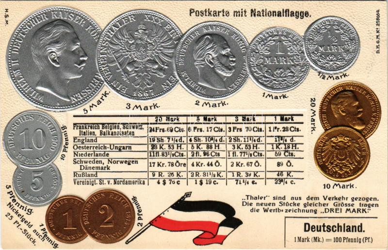 Deutschland - Postkarte mit Nationalflagge / Németország - Dombornyomott érmék és zászló / Germany - H.S.M.Embossed litho coins and flag (lyuk / pinhole)