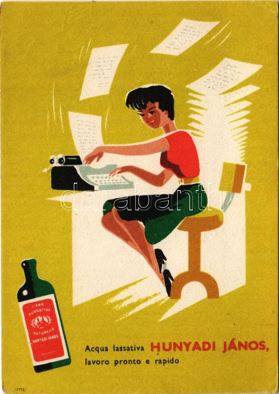 Acqua lassativa Hunyadi János, lavoro pronto e rapido / Hunyadi János Budai keserűvíz reklámlapja / Hungarian mineral water advertisement. Offset (EK)