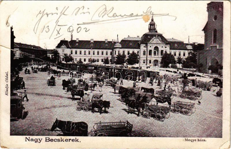1902 Nagybecskerek, Zrenjanin, Veliki Beckerek; Megyeháza, piac, városi vasút, vonat. Oldal kiadása / county hall, market, urban railway, train, locomotive (b)