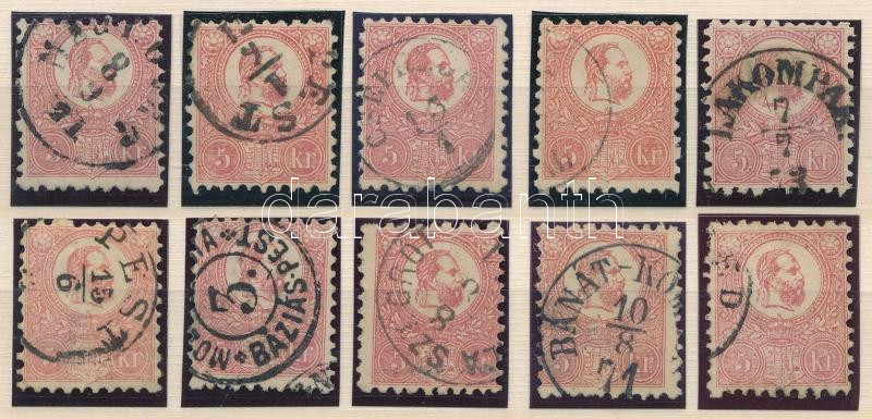 1871 Kőnyomat 5kr 10 db bélyeg szín- és típusváltozatokkal (min. 150.000)