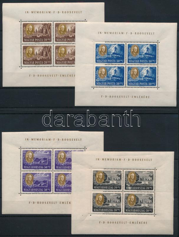 1947 Roosevelt egyenes képállású négyes kisívsor (140.000) (50f jobb oldalon felül picit behajtva, lent kis sarokhiba)