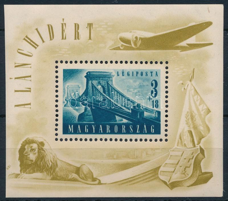 1948 Lánchíd (II.) blokk, jobb oldalt felül kis festék csík (40.000)