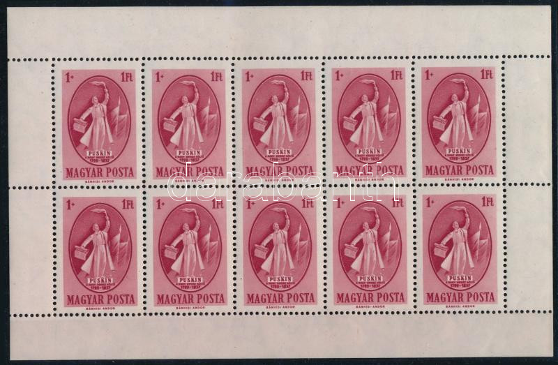 1949 Puskin 10-es kisív végig futó fogazással (100.000)
