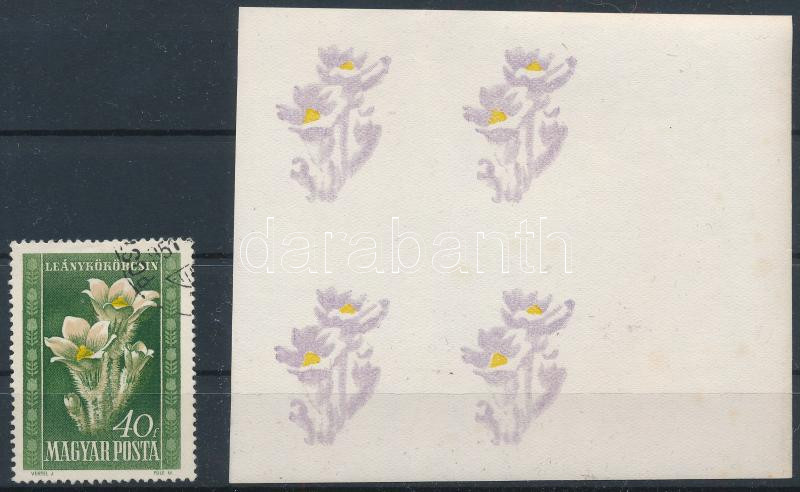 1950 Virág 40f fázisnyomat ívszéli négyestömbben + támpéldány