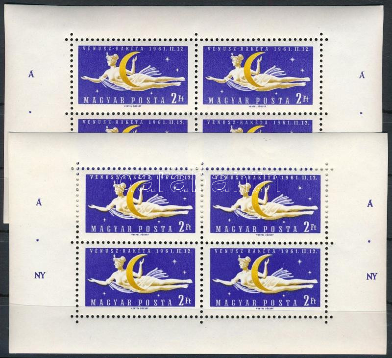 1961 ÁNY kisív látványosan eltolódott ÁNY felirattal, jobb oldalon 3, bal oldalon 7 mm a blokkszél távolsága (50.000) a támpéldány felülnyomatának betűi vékonyabbak