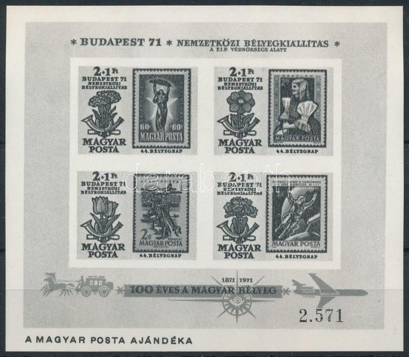 1971 Bélyegnap - Budapest '71 IV. blokk ajándék feketenyomat változat (30.000)