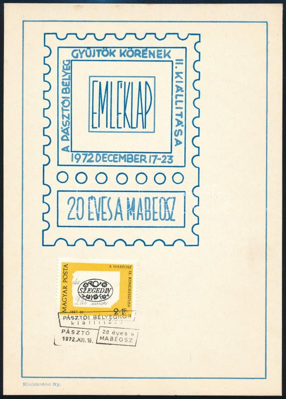 1972 Pásztói bélyegkiállítás emléklapjának terve + a megvalósult emléklap